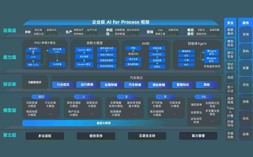 开元问学智车解决方案是一套基于AI技术的汽车行业智能化系统,,覆盖从底层算力到顶层AI应用的全栈方案。。。。方案由算力层、、模型层和应用层组成:算力层,,,方案支持多种一体机配置,,,,具备云端灵活部署、、、、多云适配以及动态优化计算资源的能力;模型层,,开元问学平台版提供了企业级AI应用一站式构建与管理平台,,,支持基于后训练强化技术的汽车企业专属模型的训练、、、评测和运营;应用层,,,,开元问学DeepSeek版提供包括超级员工、、、智能招采、、智能营销、、、、智能客服、、AI for BI等一系列解决方案,,,,可助力汽车行业实现数字化转型,,让管理更智能、、、响应更敏捷。。
