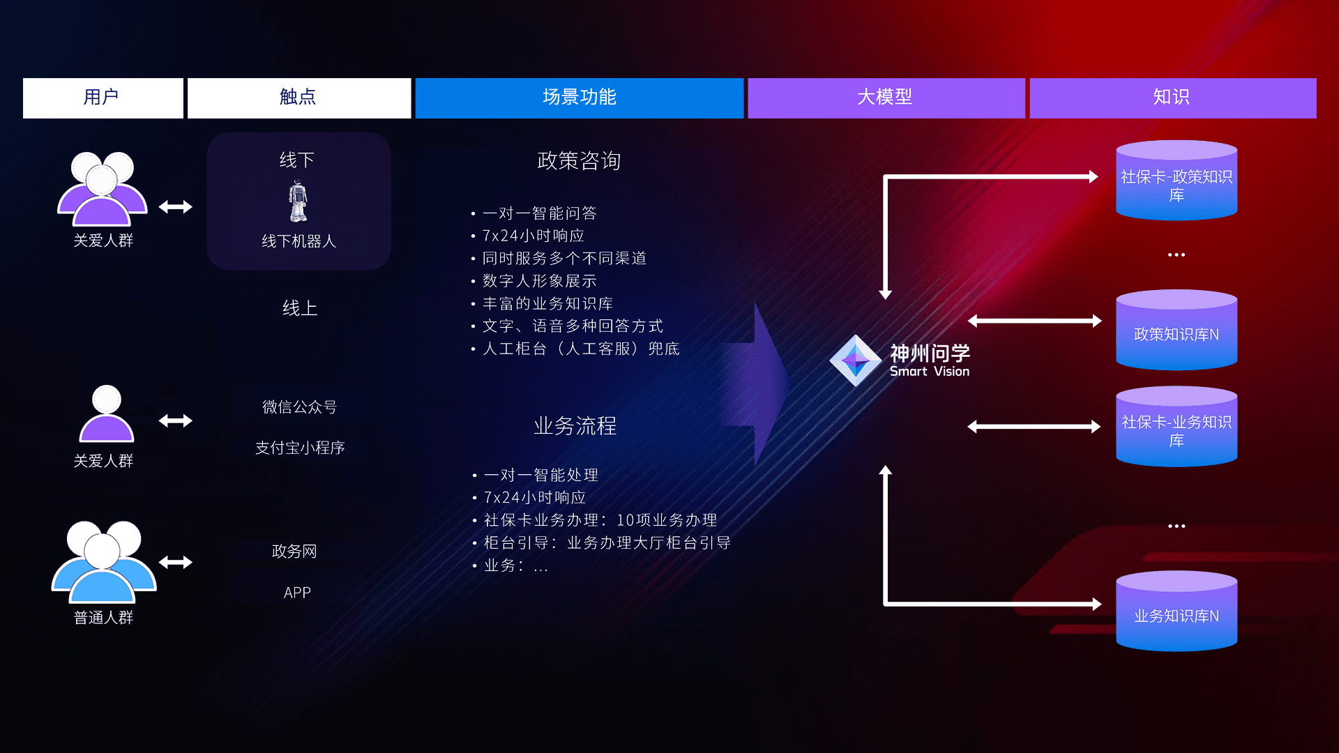 在服务大厅部署客服机器人,,,,在线上应用和小程序配置客服数字人,,,724小时为群众解答常规问题,,,,客服机器人无法处理的,,,,转现场人工处理。。。。